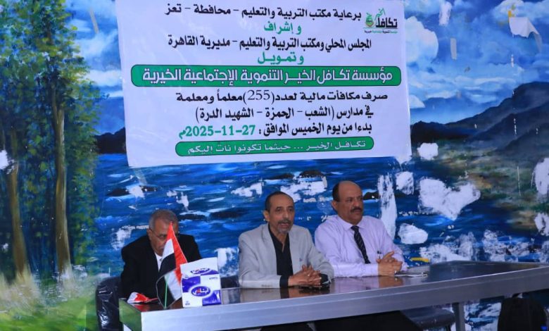 نائب مدير مكتب التربية يدشن مشروع المكافآت المالية لـ 255 معلما ومعلمة في مديرية القاهرة بتعز