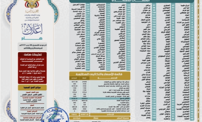 اخبار اليمن : وزارة الأوقاف تعلن عن 234 منشأة معتمدة لتسجيل الحجاج اليمنيين.. وتحذر من السماسرة
