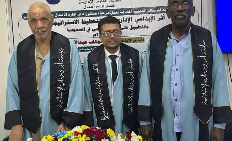 الباحث عبدالوهاب عبدالله قائد مفلح ينال الدكتوراه بامتياز في ادارة الأعمال من جامعة ام درمان