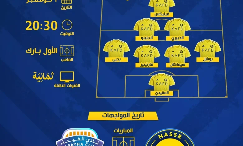 اخبار النصر السعودي : موعد مباراة النصر والفيحاء في دوري روشن والقنوات الناقلة