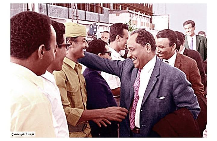 صورة نادرة للرئيسان قحطان الشعبي وسالم ربيع و هم يتبادلون الإبتسامات