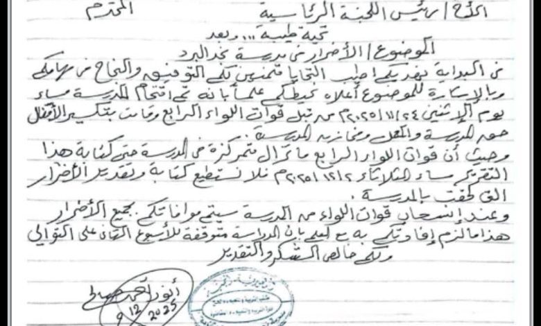 لواء الجبولي يقتحم إحدى مدارس المقاطرة بلحج ويوقف الدراسة فيها للأسبوع الثاني على التوالي