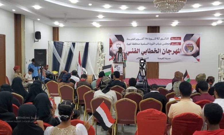اخبار اليمن : مجلس شباب الثورة السلمية بالمهرة يحتفي بالذكرى الـ62 لثورة 14 أكتوبر المجيدة